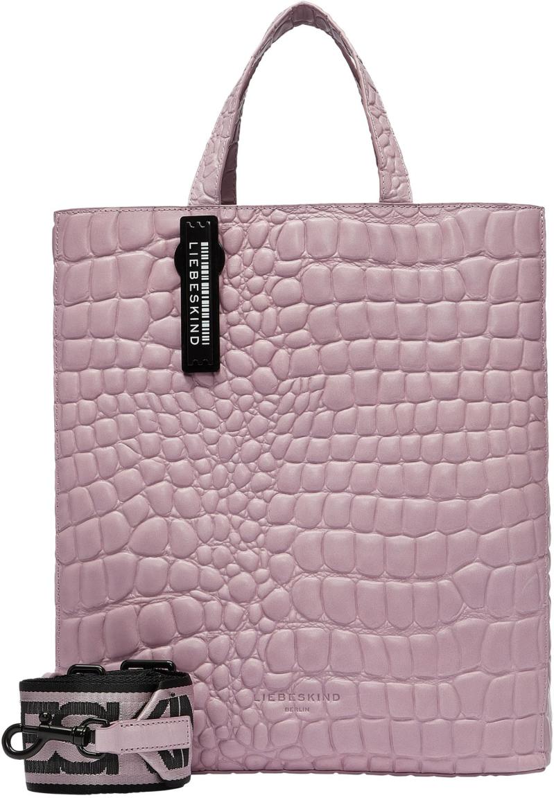Die Kurzgrifftasche Kroko Paper Bag M der Marke Liebeskind ist aus natürlich gefärbten, stabilen Rindsleder mit aufregender Reptil Prägung gefertigt. Diese Haptik macht die Tragetasche im Farbton Pale Lavender (blasses Lila) zu einem wilden Accessoires mit femininen Touch. Innen zeigt sich die Damentasche im schwarzen Baumwollfutter.