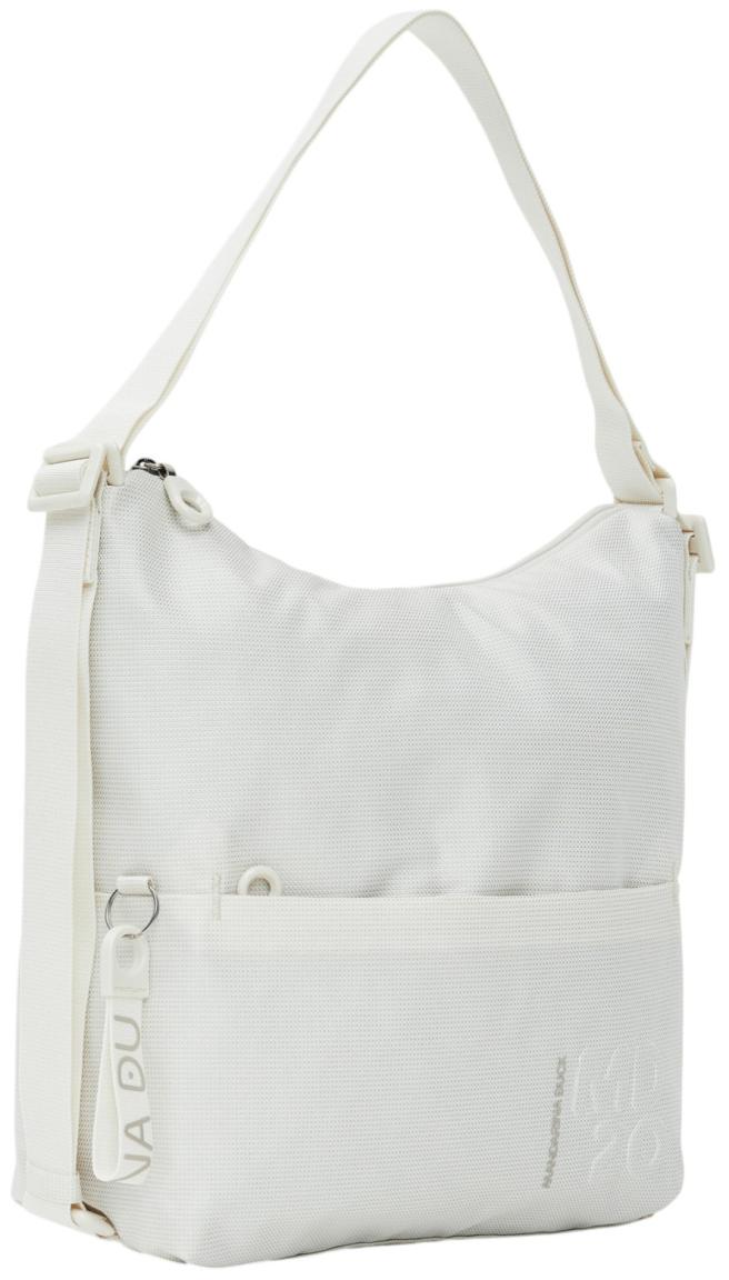 Ein absolutes Fashion-Statement ist die Rucksacktasche Slide aus der Serie MD20 von Mandarina Duck. Die Hobo Bag ist aus federleichtem Kunstfasergewebe in der Farbe Latte gefertigt. Verschiedenfarbige Fäden wurden hierbei derart zu einem dichten Stoff verwebt, dass der Farbeindruck eines trendigen Cremeweiß entsteht. Durch die einzigartige Webart erhält die Tasche zudem einen besonderen Schimmereffekt.