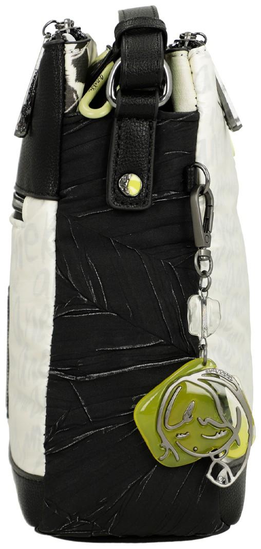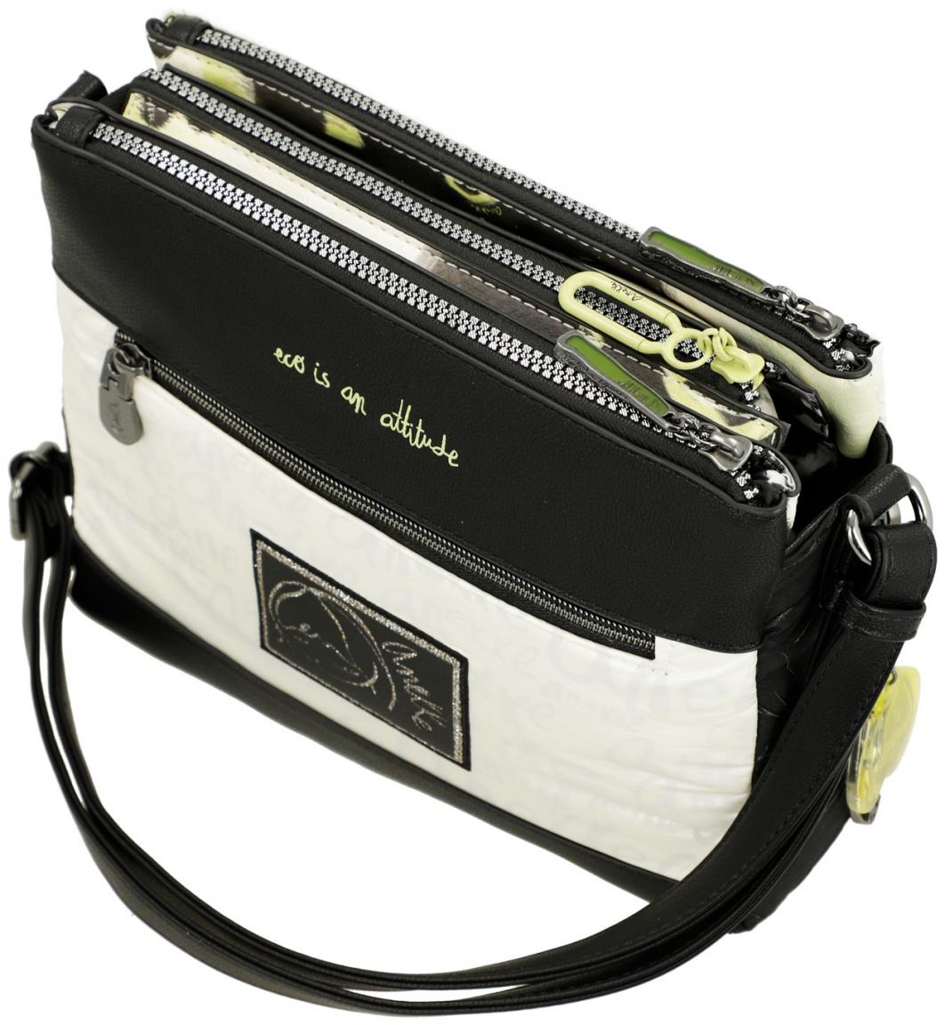 Gefertigt aus einem hochwertigen Materialmix aus Nylonstoff und Kunstleder, überzeugt sie nicht nur durch ihre Haptik, sondern auch durch ihr Design: kräftige Weiß, Gelb- und Schwarztöne treffen einen fluoreszierenden Anekke-Print, der die Tasche zu einem echten Hingucker macht- selbst bei schlechten Lichtverhältnissen.
