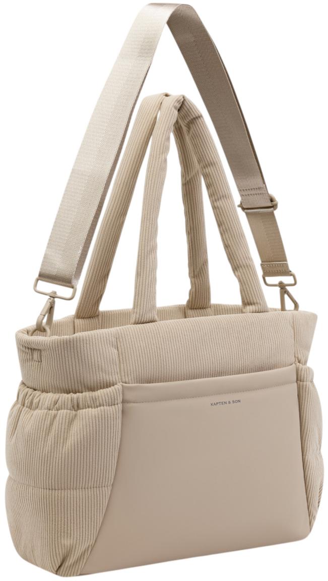 Der Shopper im cleanen Look wurde in einem ansprechenden Materialmix aus recyceltem PET und weichem Cordsamt hergestellt. Das wattierte Leichtgewicht überzeugt mit einem Volumen von 13 Litern und dem zusätzlichen Laptopfach. Hier findet alles seinen Platz und es sind keine Grenzen gesetzt. Der zusätzliche verstellbare Riemen lässt die Damentasche bequem crossover tragen. Somit hat man beide Hände frei, egal ob beim gemütlichen Bummeln oder als zeitgenössischer Begleiter im Büro.