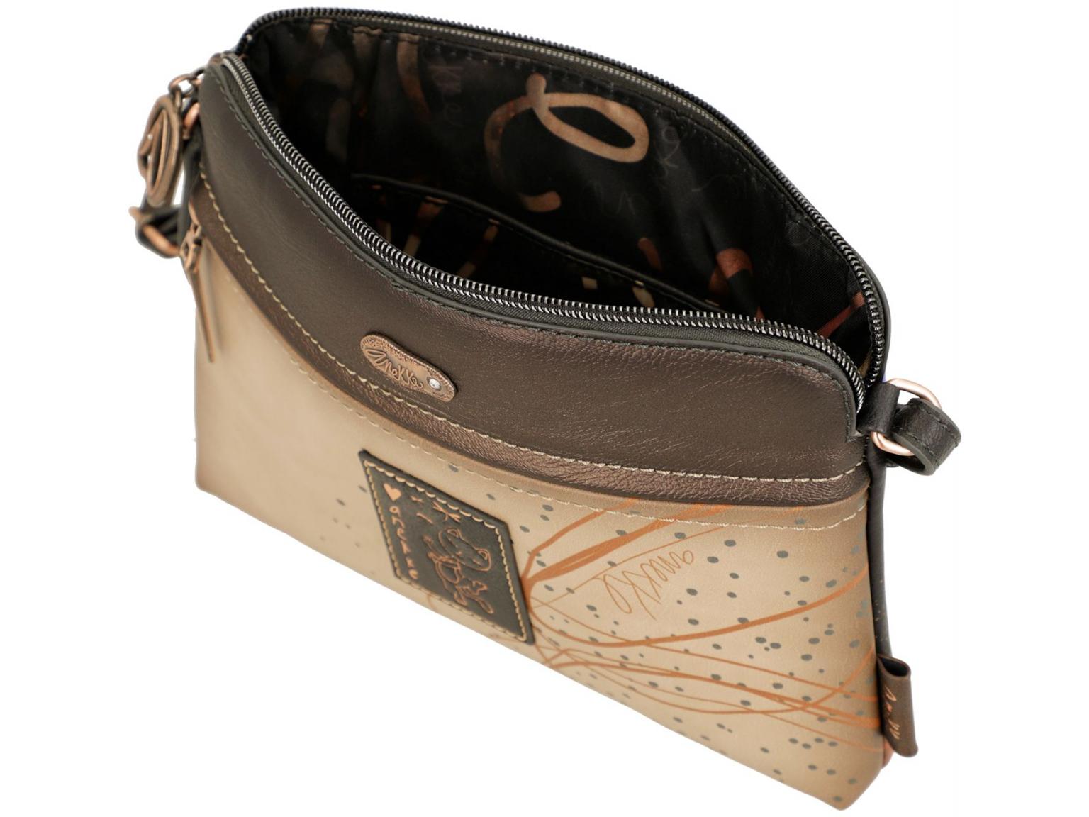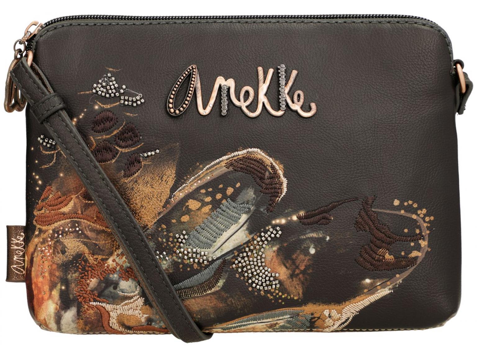 Mit der Slim Crossover Tasche aus der Kollektion Dreamverse von Anekke haben sie ein begehrenswertes Accessoire an ihrer Seite. Die elegante Serie Wings ist Teil dieser Kollektion. Der wunderschöne Print auf der Vorderseite der Tasche stellt Flügel dar. Kunstvoll ergänzt durch glänzende Metallfäden in Gold und winzigen Nieten, die perfekt mit dem üppigen Schriftzug der Marke harmonieren und ein tolles Finish ergeben.