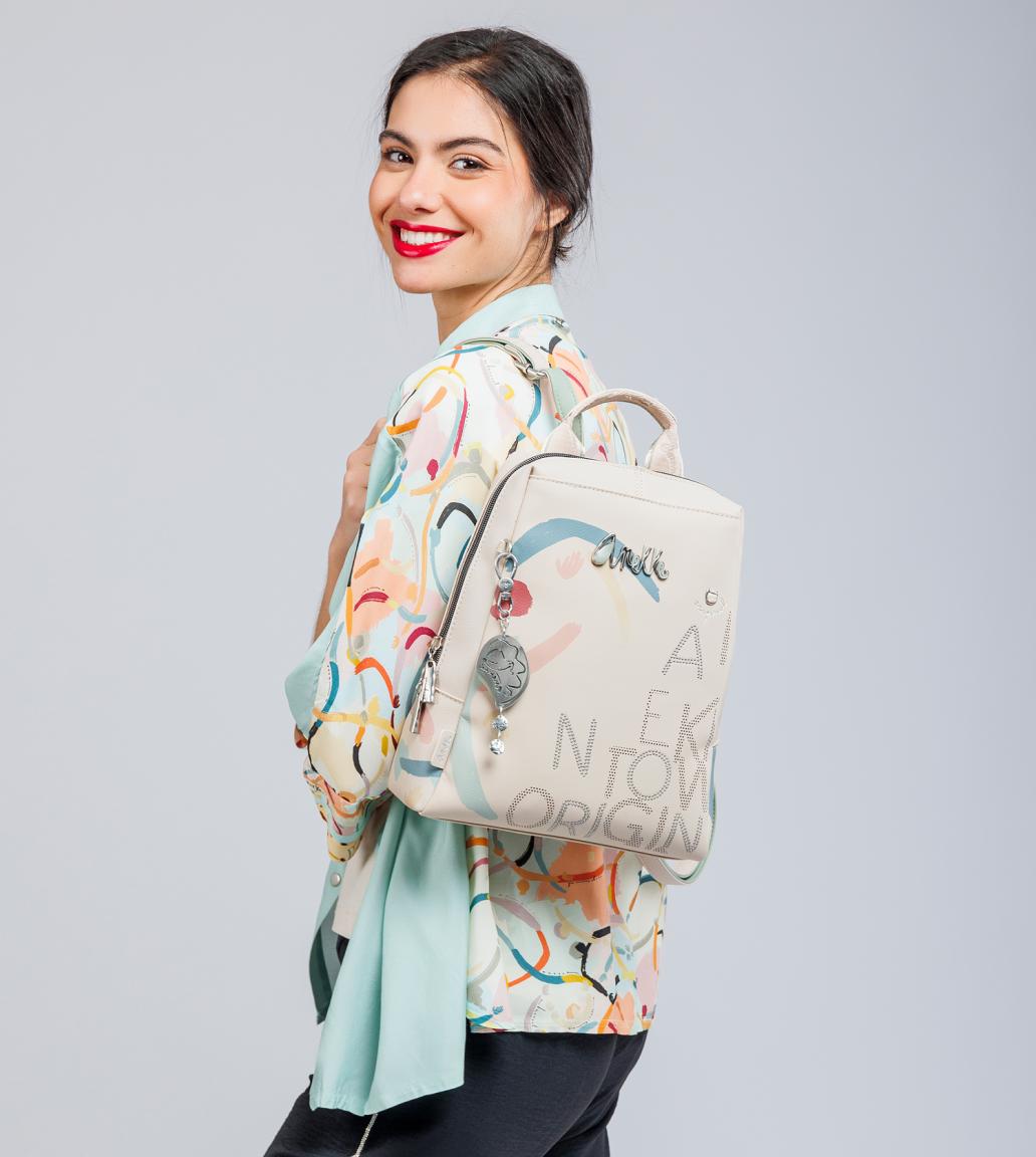 An der Rückseite des Citybackpacks wird der Punkteprint wieder aufgegriffen. Als Eyecatcher befindet sich seitlich ein Print mit Anekkes Konterfeit.