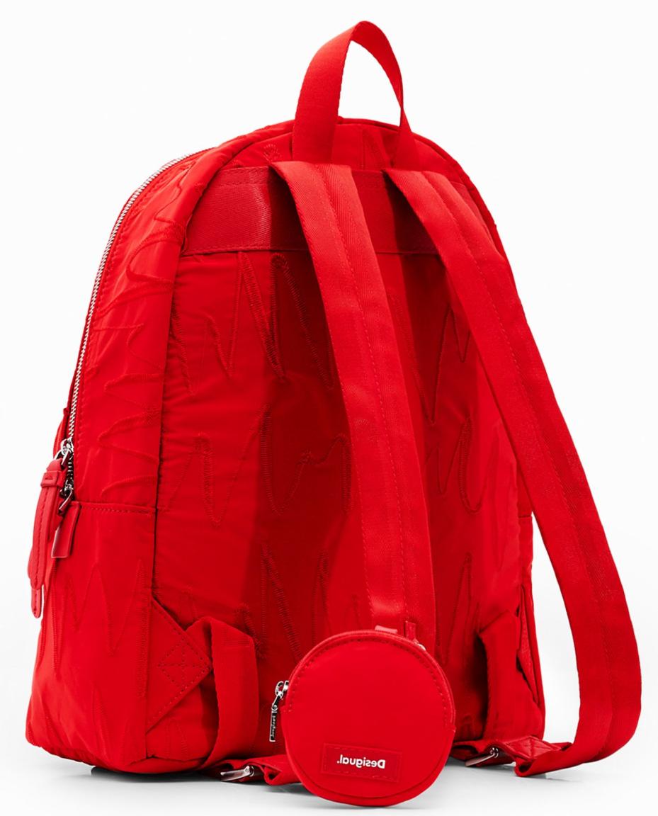 Der Stoffrucksack Mombasa von Desigual aus der Bolis Kollektion zeigt sich in einem feurigen Rot mit Ziernähte die ein grafisches Muster ergeben. Das Kunstfasergewebe in der Farbe Rot (Carmin) ist im Sinne der Nachhaltigkeit produziert aus Recycling Material. Perfekt um mit dem Puls der Zeit zu gehen, das grafische Muster deutet dies auch an.