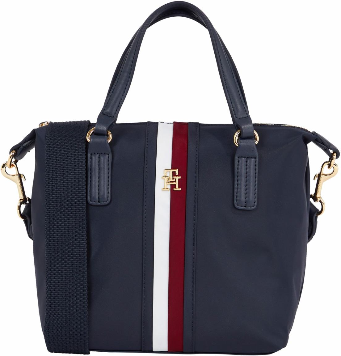 Die kompakte Crossover Bag der Serie Poppy Small Tote Corp von Tommy Hilfiger begeistert mit glanzvoller Wirkung und den markentypischen Ripsband, welches vertikal an der Taschenvorderseite verläuft.