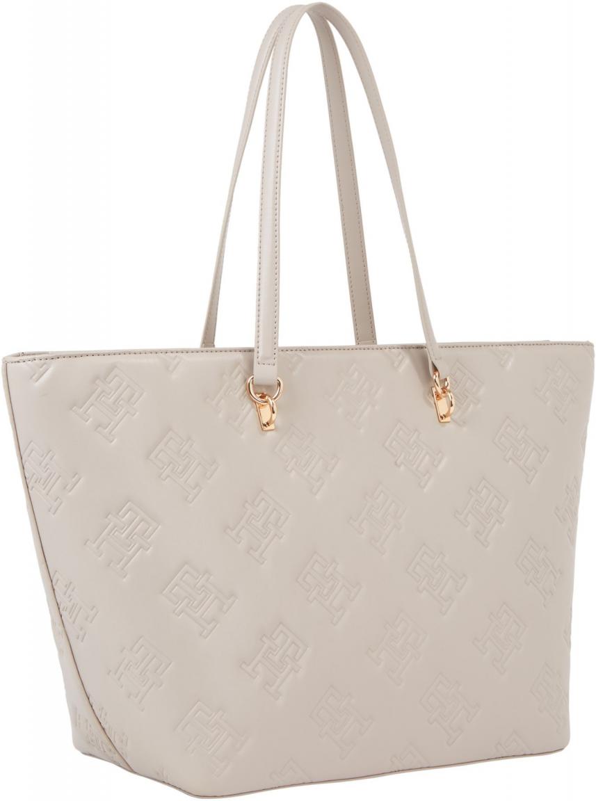 Edel und en Vogue! Die große Henkeltasche TH Refined Tote Mono von Tommy Hilfiger glänzt durch hochwertiges Lederimitat in einem zarten Taupe, mit Monogramm Prägung in Kombination mit goldfarbenen Metallelementen. Ob als Business Tasche oder als stylisches Freizeitaccessoires - dieser Shopper für trendige Damen ist ein wahrer Eyecatcher.