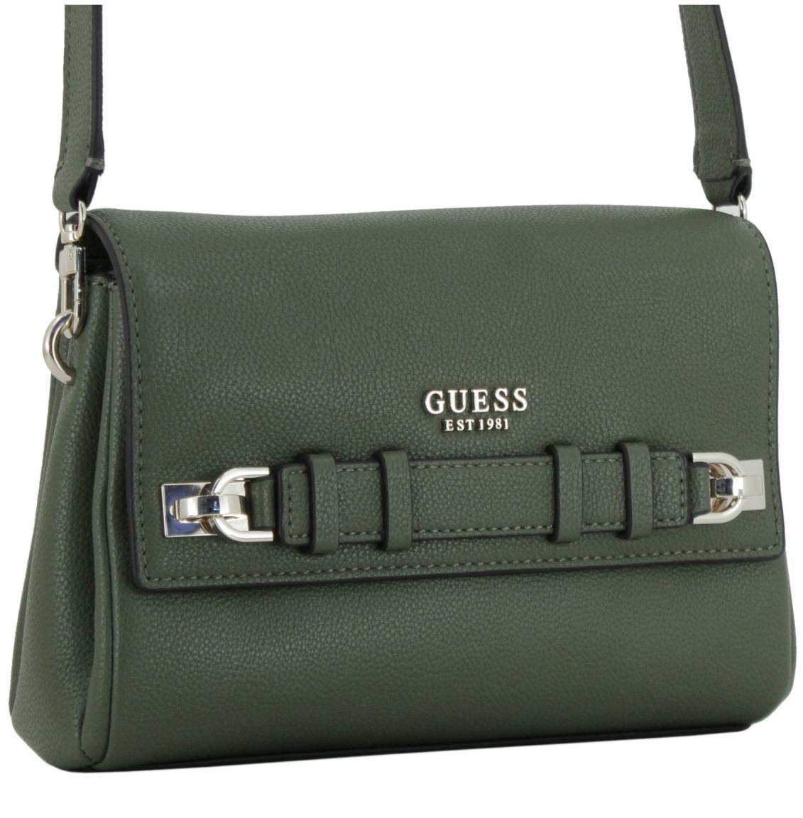 Stil- und Modebewusstsein beweist frau mit dieser Crossovertasche aus der Kollektion Gregoria von Guess. Das geschmeidige Kunstleder im Farbton Olive (gedecktes Grün) erwirkt durch die genarbte Oberfläche eine authentische Lederoptik, die den edlen und hochwertigen Look der Schultertasche unterstreicht. Das elegante und außergewöhnliche Design verleiht jedem Outfit den letzten Schliff.