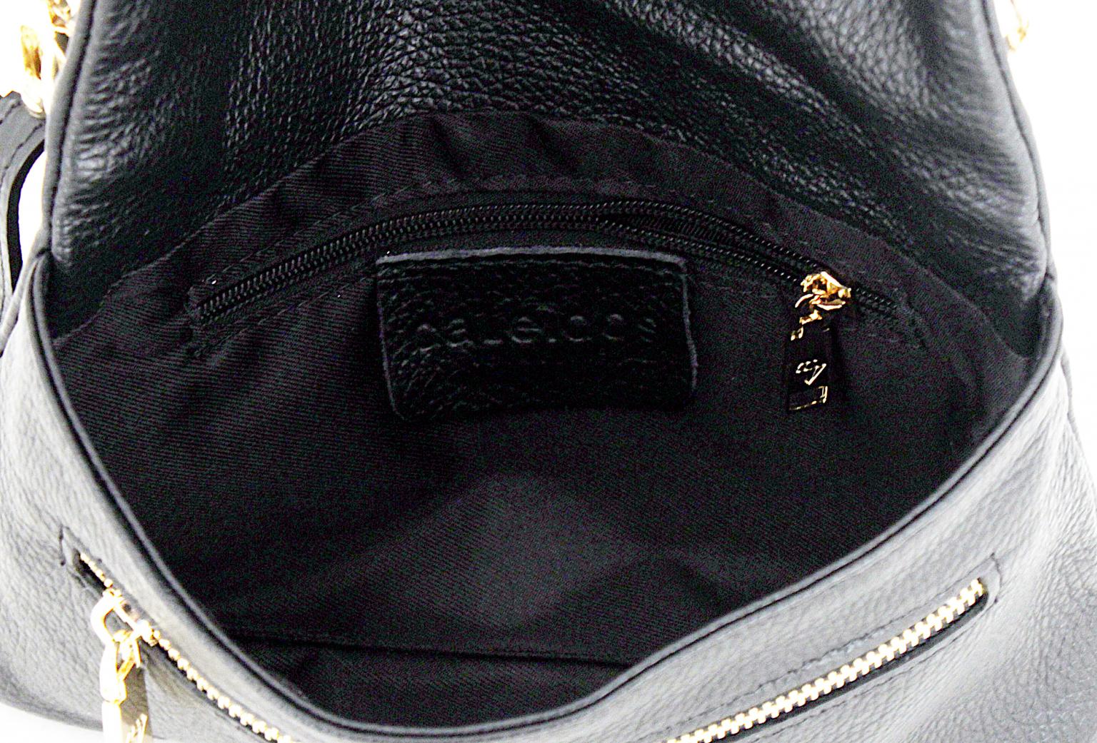 Geschlossen wird das Hauptfach der Chain Bag mit Überschlag und Magnet. Innen ist die Handtasche mit einem hellen Textilfutter ausgestattet.