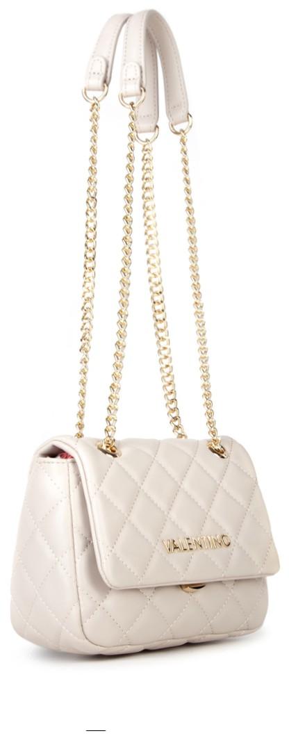 Ein absolutes Must Have der Saison ist diese kleine Schultertasche aus der Serie Ocarina von Mario Valentino. Gefertigt aus geschmeidigem Glattlederimitat in hellem Beige (Ecru), besticht die Abendtasche durch die rautenförmigen Steppnähte. Eine dezente Polsterung sorgt für den leichten 3D-Effekt der Chain Bag.