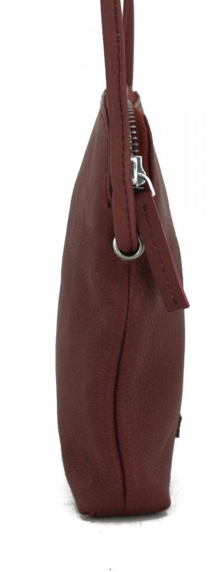 Das Hauptfach der Crossbody Bag ist per Reißverschluss verschließbar. An der Vorderseite der Umhängetasche ist ein kleines Lederschild mit Markenlogo angebracht.