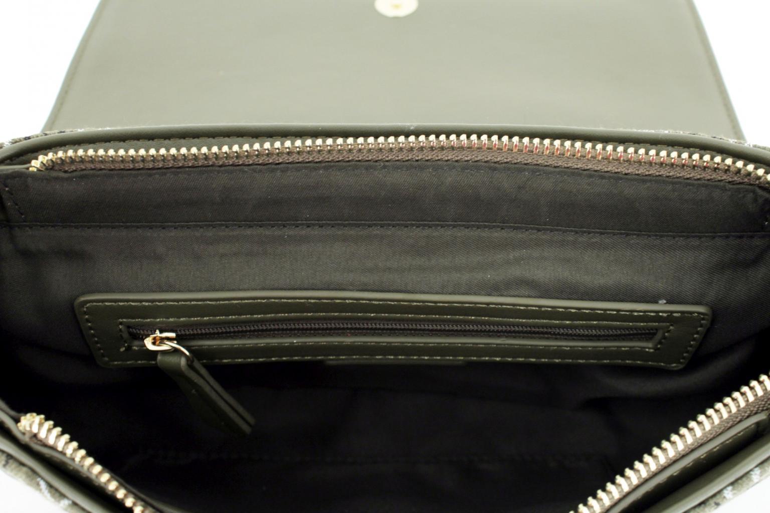 Geschlossen wird die Schultertasche mittels Überschlag und Magnet sowie zusätzlichem Reißverschluss.