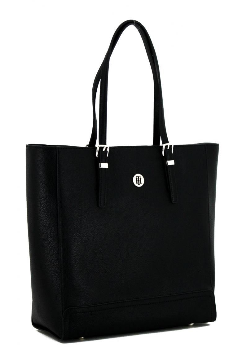 Die Henkeltasche Work Bag von Tommy Hilfiger aus der Serie Honey Finegrain ist aus hochwertigem Lederimitat gefertigt. Der Shopper ist komplett in schwarz gehalten und mit einem blauen Textilfutter ausgestattet.