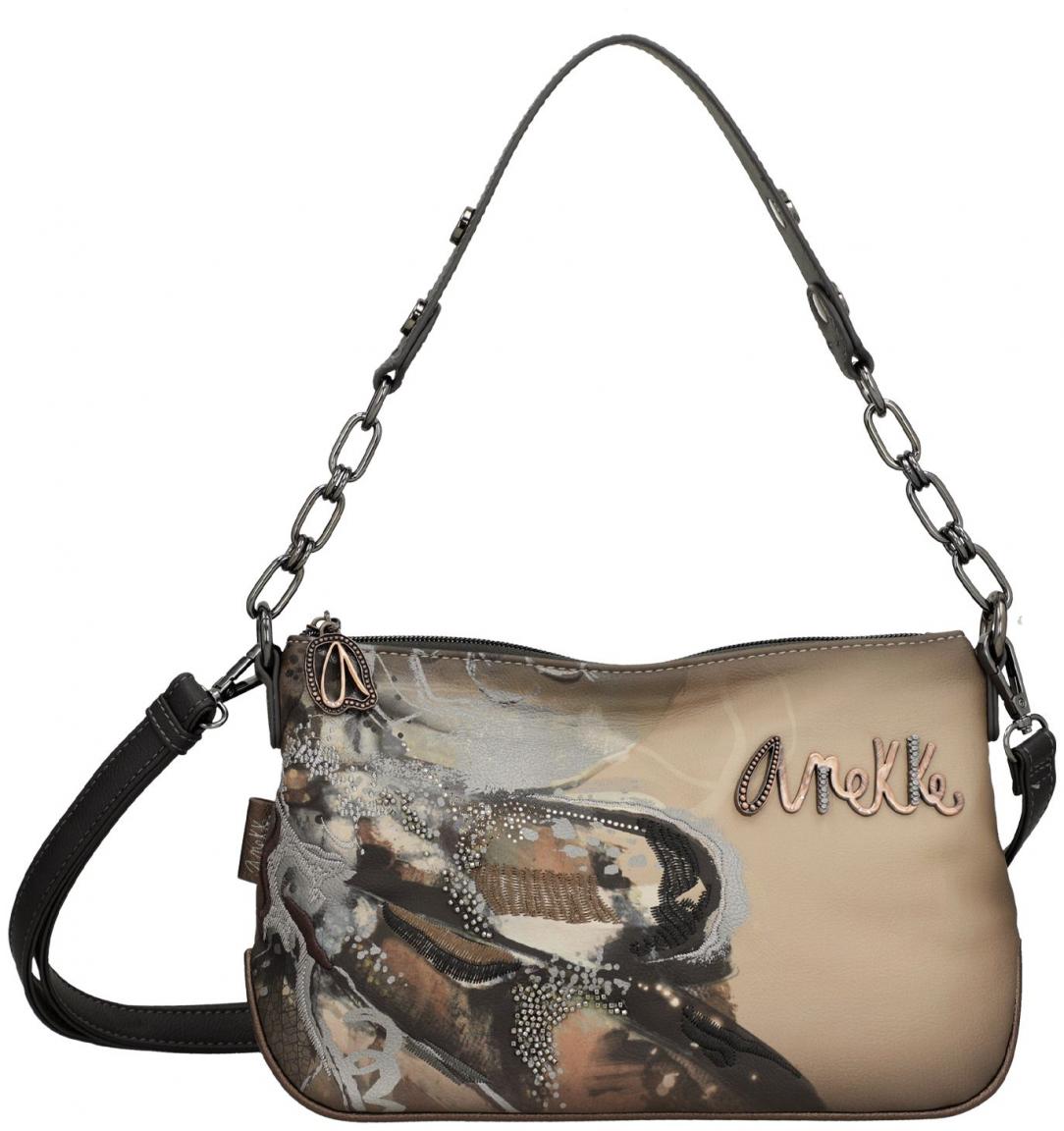 Diese Schultertasche aus der elegantesten Linie der Kollektion, Wings, spiegelt diese Traumwelt mit dem abstrahierten Print an der Vorderseite wider. Glänzende Stickereien, eingearbeitete kleine Perlen und glitzernde Strasssteine betonen das Muster zusätzlich. Gefertigt aus glattem Kunstleder ist die Damentasche in gedeckten herbstlichen Farbtönen gehalten. Das Metallemblem an der Vorderseite reflektiert das fantasievolle Design der Schultertasche.