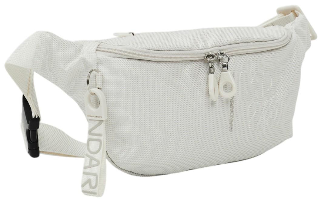 Ein absolutes Trend-Accessoire und dabei auch noch überaus praktisch ist die Hüfttasche Bum Bag aus der Serie MD20 von Mandarina Duck. Gefertigt ist der Fanny Pack aus federleichtem Kunstfasergewebe im Design Latte. Verschiedenfarbige Fäden wurden hierbei so miteinander verwoben, dass der Farbeindruck eines angesagten Cremeweiß entsteht. Durch die einzigartige Webtechnik erhält die Gürteltasche einen dezenten Schimmer-Effekt.