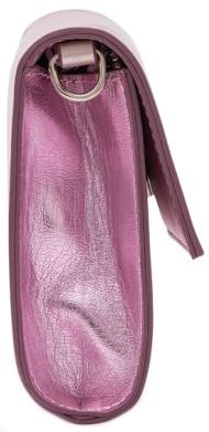 Die Vorderseite der Umhängetasche ziert ein silberfarbenes Markenemblem.