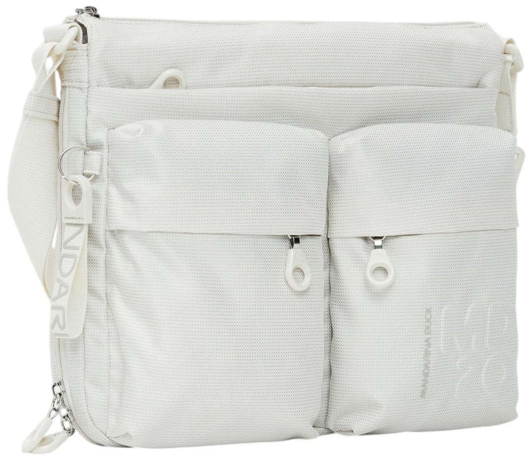 Ein absolutes Fashion-Highlight ist die Umhängetasche Crossover aus der Serie MD20 von Mandarina Duck. Die Crossbody Bag ist aus federleichtem Gewebe im Farbdesign Latte gefertigt. Die verschiedenfarbigen Fäden sind derart zu einem dichten Stoff verwebt, dass der Farbeindruck eines angesagten Cremeweiß entsteht. Der leicht irisierende Glanz macht die Schultertasche zu einem echten Eyecatcher.