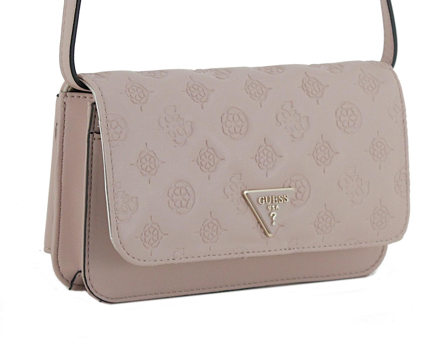 In besonders elegantem Look präsentiert uns Guess diese kleine Überschlagtasche aus der Serie La Femme. Das glatte Lederimitat in zartem Rosa ist allover mit dem Peony-Logo geprägt. Dadurch erhält die Abendtasche eine jugendliche Leichtigkeit.
