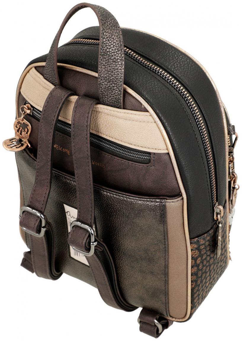 Das geschmeidige Kunstleder des Rucksacks ist in dunklen Farbtönen gefertigt. Unterschiedliche Beschaffenheiten erzeugen sowohl optisch als auch haptisch ein Abenteuer für unsere Sinne.