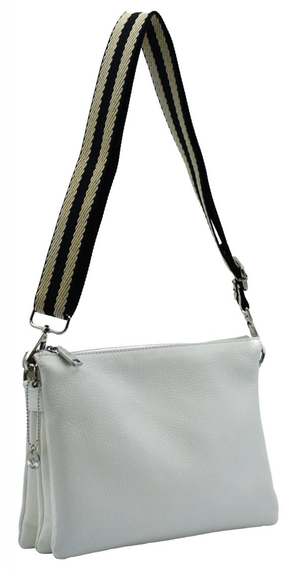 Das Highlight dieser Umhängetacshe sind die austauschbaren Schulterriemen. Ob mit sportlichem Stoffriemen oder mit dem zarten Lederriemen, beide machen eine gute Figur und sind für viele Gelegenheiten geeignet. Beide Riemen sind in stufenlos verstellbar und mittels Karabiner abzunehmen.