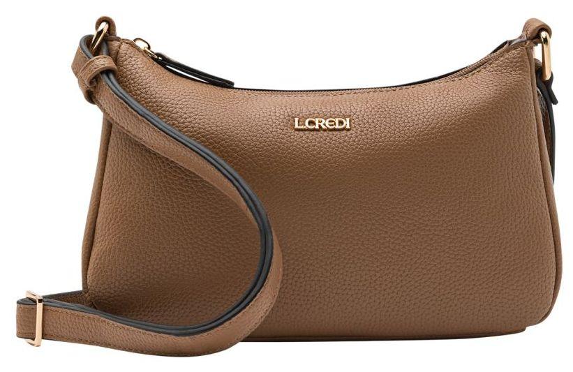 Die schmale Schultertasche Norika von L.Credi präsentiert sich in dem warme Farbton Toffee (braun) mit feiner Narbung für einen authentischen Lederlook. Die kleine Handtasche passt hervorragend zum Herbst und verleiht Ihrem Outfit den letzten Schliff. Die Schultertasche ist schlicht designet mit goldfarbenen Beschlägen.