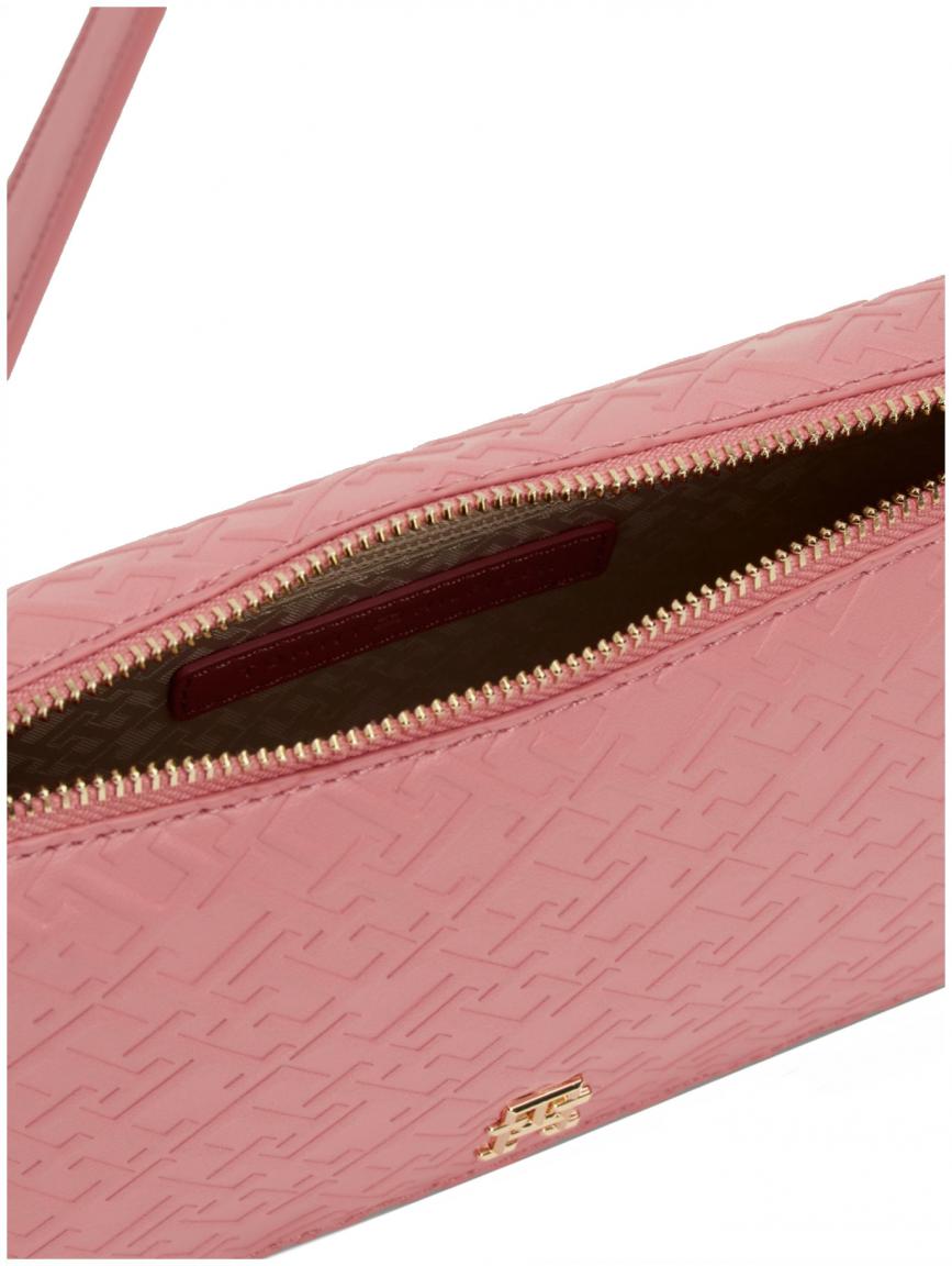 Die verspielte Schultertasche von Tommy Hilfiger aus der Serie TH Refined Shoulder Bag Mono ist aus hochwertigem Lederimitat in Teaberry Blossom (rosa) gefertigt. Ein optisches Highlight ist die stilvolle TH Interlock Prägung. Die goldfarbenen Metallelemente verleihen der Henkeltasche einen Hauch Eleganz.