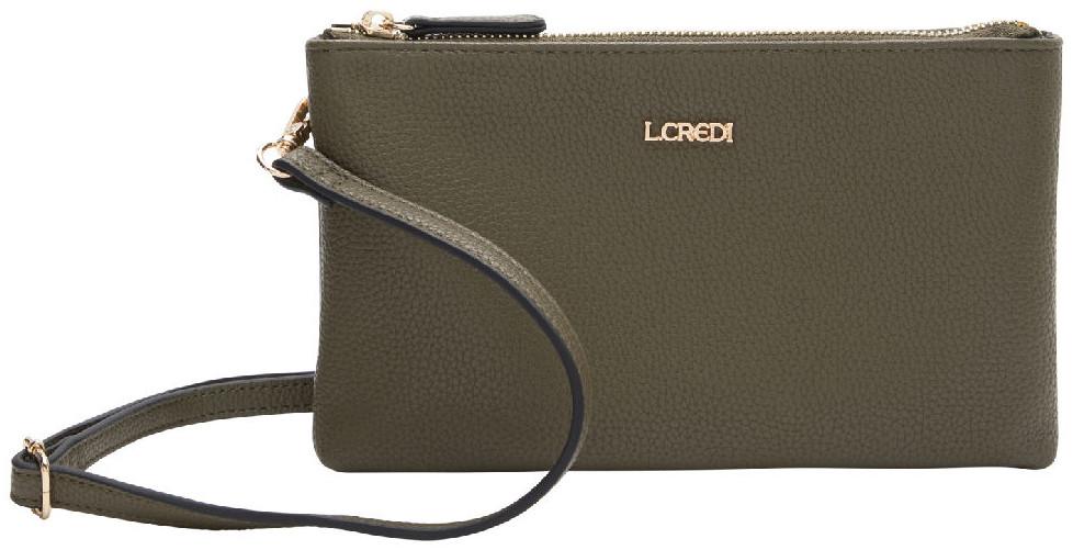 Diese zweigeteilte Crossovertasche aus der Serie Ella von L.Credi ist aus hochwertigem authentisch genarbtem Lederimitat in der Farbe Forest (Grün) gefertigt.