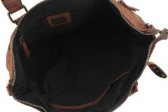Beschläge, Gehänge und Reißverschlüsse sind aus messingfarbendem Metall in Vintageoptik.