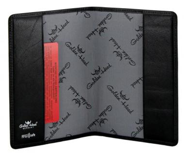 Dieser Reisepassumschlag aus der Serie Colorado der Marke Golden Head ist aus handgefärbten und ökologisch gegerbten Voll-Rindleder im klassisch eleganten Schwarz (Black) gefertigt. Abgerundete Kanten und feinstes Glattleder stehen für hochwertige Qualität. Innen ist das Etui mit Textilstoff ausgekleidet.