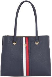 Die Vorderseite der Tote Bag zieren vertikale Markenstrips und ein goldfarbenes TH-Interlock-Emblem.