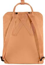Strapazierfähiges Vinylon F Gewebe zeichnet den Klassiker Kanken von Fjällräven aus. Dieser Jugendrucksack ist in der Farbe Peach Sand (blasses Orange) gehalten, die Schultergurte und Tragegriffe sind farblich perfekt an die Hauptfarbe angepasst.