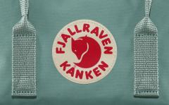 Das Fjällräven Schild an der Vorderseite des Sportrucksacks ist aus reflektierendem Material für Sicherheit im Straßenverkehr.