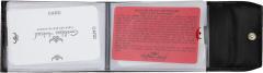 Das Etui ist per Überschlag mit Druckknopf verschließbar, beinhaltet zehn Kartenhüllen, welche als Gesamtes auch praktisch aus dem Lederetui herausgenommen werden können. Dabei können auch im Lederumschlag noch zwei Karten deponiert werden.