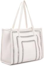 Suri Frey präsentiert uns eine Henkeltasche als Set, aus der Serie Maddy, welche perfekt in die wärmere Jahreszeit passt. Gefertigt aus veganem und authentisch genarbten Lederlook im erfrischenden Farbton Ecru (Altweiß), bezaubert uns dieser Shopper mit ansprechendem Lasercut Muster an der Taschenvorderseite. An dem unbeschwerten und leichten Design bleiben unsere Blicke hängen.