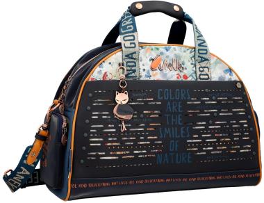 Die neue Nature Pachamama Linie aus der Kollektion Amazonia der Marke Anekke begeistert uns farbenfrohen Design. Sattes Dunkelblau mit bunten Stoffeinsätzen und unzähligen Cutout's vervollständigen das geschmackvolle Aussehen der Reisetasche. Glanzvolle Details wie der üppige Markenschriftzug, der abnehmbare Anhänger mit Katze Towanda und viele kleine Elemente lassen dieses Accessoire zum neuen Lieblingsstück werden.