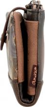 Gefertigt aus weichem Kunstleder in Brauntönen zeigt die Vorderseite des Portemonnaies den charakteristischen Print. Dargestellt ist Anekke diesmal als emotionale Künstlerin, die vollkommen in ihr Tun, dem Malen des 'enso', vertieft ist. Zarte Stickereien und Glitzerelemente verleihen dem Motiv einen besonderen Audruck.
