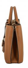 An der Vorderseite der Henkeltasche befindet sich ein farblich angepasstes Markenemblem in klassischer Dreiecksform. Der abnehmbare Anhänger, der mit einem Kunstlederband an der Satchel befestigt wird, ist ein echter Eyecatcher.