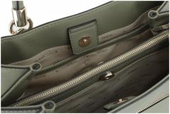 Das zweigeteilte Hauptfach der Satchel wird mit einer Lasche und Magnetverschlüssen geschlossen. Innen ist die Handtasche mit einem hellen Textilfutter ausgestattet.