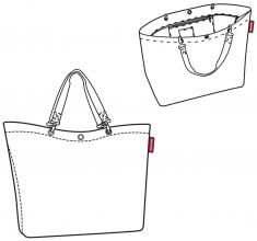 Die Tragehenkel aus rotem Gurtband sind mittels Karabiner an den großen Ösen der Shoppertasche befestigt. Der verstärkte Boden der Tragetasche sorgt für sicheren Stand.