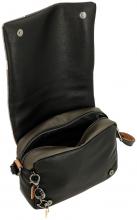 Das Hauptfach ist mit Überschlag und zusätzlichen Reißverschluss sicher zu verschließen. Innen präsentiert sich die Damentasche mit einem bedruckten Textilfutter.