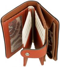 Innen ist das Portemonnaie in Terracotta und hellem Beige gehalten. Die einzelnen Fächer sind mit passendem Textilfutter ausgestattet.