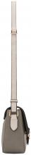 An der Vorderseite des Überschlags befindet sich in goldfarbenen Lettern der Markenschriftzug. Innen wurde die Überschlagtasche mit einem grauen Textilfutter ausgekleidet.