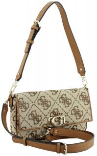 Als elegantes Accessoire zum edlen Abendlook präsentiert sich die Überschlagtasche Shoulder Bag aus der Kollektion Circe von Guess. Gefertigt ist die Baguettetasche aus geschmeidigem Jacquardgewebe im Farbdesign Latte Logo. In das hellbeige Gewebe ist hierbei das ikonische 4G-Logo in Braun eingearbeitet, wodurch die Schultertasche nicht nur ihren unverwechselbaren Look erhält, sondern auch zum richtigen Statement-Piece wird. Details aus genarbtem Kunstleder in warmem Braunton runden das Design der Überschlagtasche ab.